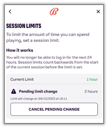 Any requests to decrease your limits are implemented immediately, with no waiting period. For example, if you have a 1-hour Session Limit and want to reduce it to 30 minutes, the change will take effect right after you click ‘Confirm.’ You’ll have the opportunity to review all changes before finalizing.